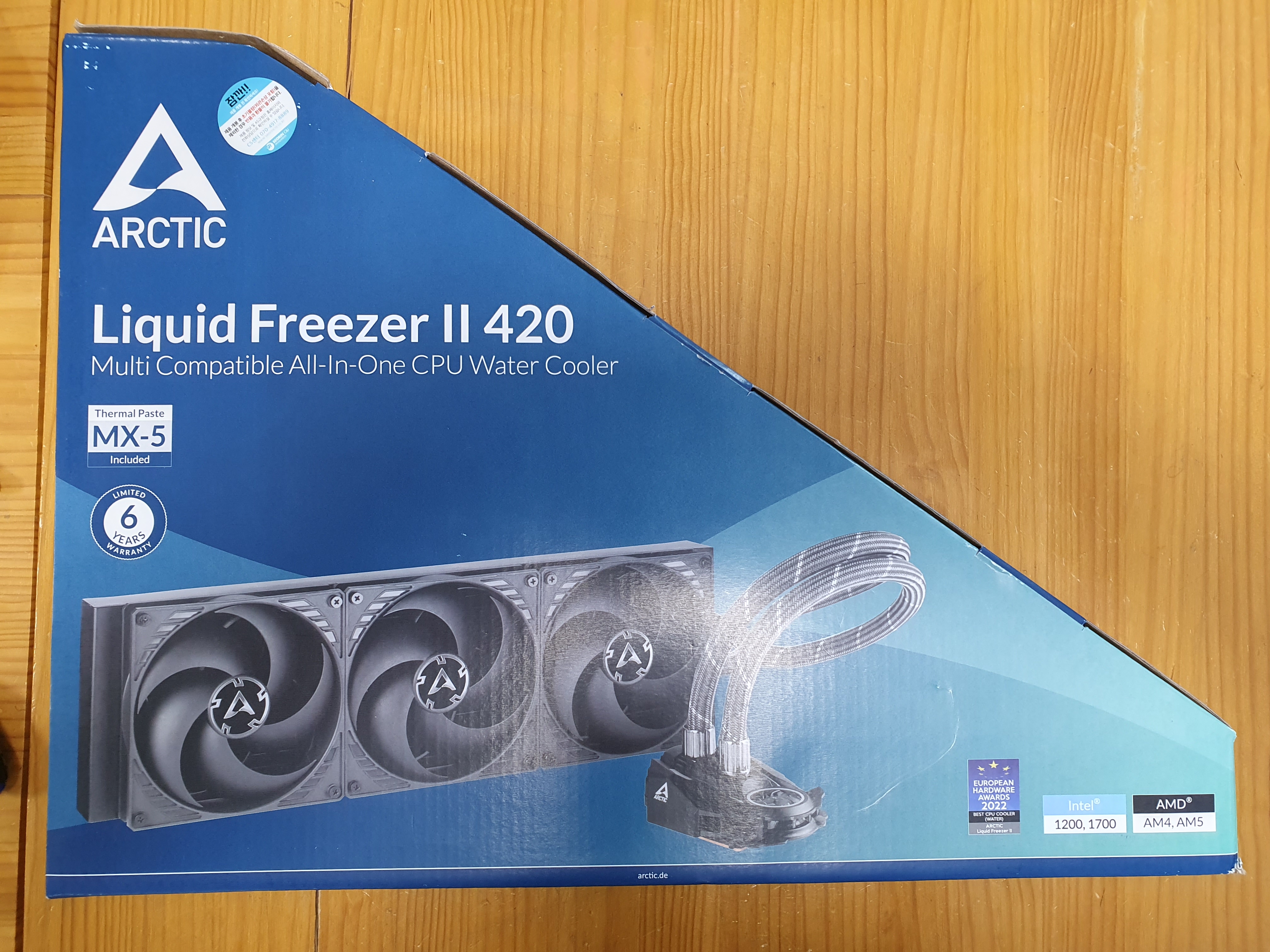 ARCTIC Liquid Freezer 2 420은 팬 크기가 140mm*3개가 달려있는 쿨러로 왠만한 케이스에서는 장착이 불가능하다고 들었습니다. 팬이 일반적인 쿨러에 비해 20mm정도 큰것으로 보아 쿨링에 좋은 성능을 보여줄것 같다는 기대에 지인이 덜컥 구매해 버렸네요.