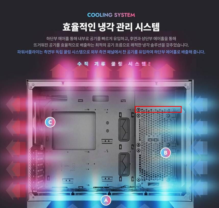 B 부분위에 빨간 네모 박스 부분과 라디에이터 및 쿨러 부분이 간섭이 생깁니다. 저 빨간색 부분을 가공을 통해서 잘라 내야됩니다. 저의 경우 건너 건너 지인분께 부탁해서 해당부분을 절단했습니다.