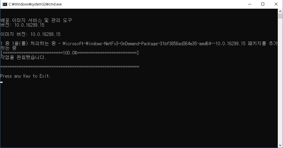 이런 화면이 뜨면 설치가 완료됐는데요 아무키나 눌러주시면 창이 닫힙니다. 이후 넷프레임워크3.5 때문에 설치가 안된 프로그램을 설치해주시면 해결완료됩니다 :)