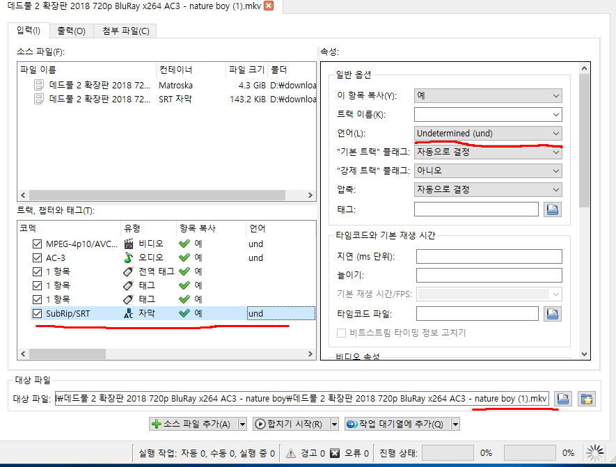 3. SRT로 변환 하셨다면 이제 MKV툴에 영상 파일과 자막 파일을 같이 추가해 줍니다. 영상안에 기본 자막이 있을 수도 있으니 영상 파일부터 추가 후 자막 파일을 추가해 주시면 됩니다.