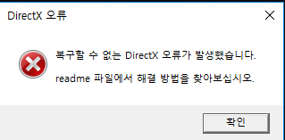 3.복구 할수 없는 directx 오류