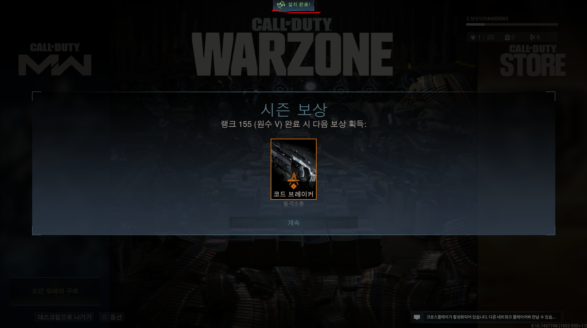3월 11일부터 오픈 된 콜 오브 듀티 : 워존 (이하 워존)을 해볼려고 하는데 무슨 게임이 이렇게 한번 하는데 빡센지 설치 후에 실행 후 튕김을 계속 하다가 어느 정도 해결 된 것 같아서 공유 해 볼려고 합니다. 간단히 증상과 해결 방법 순으로 나열하겠습니다.
