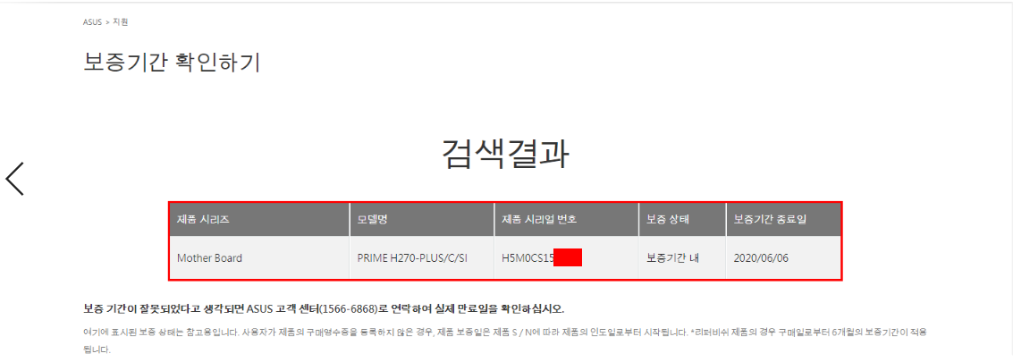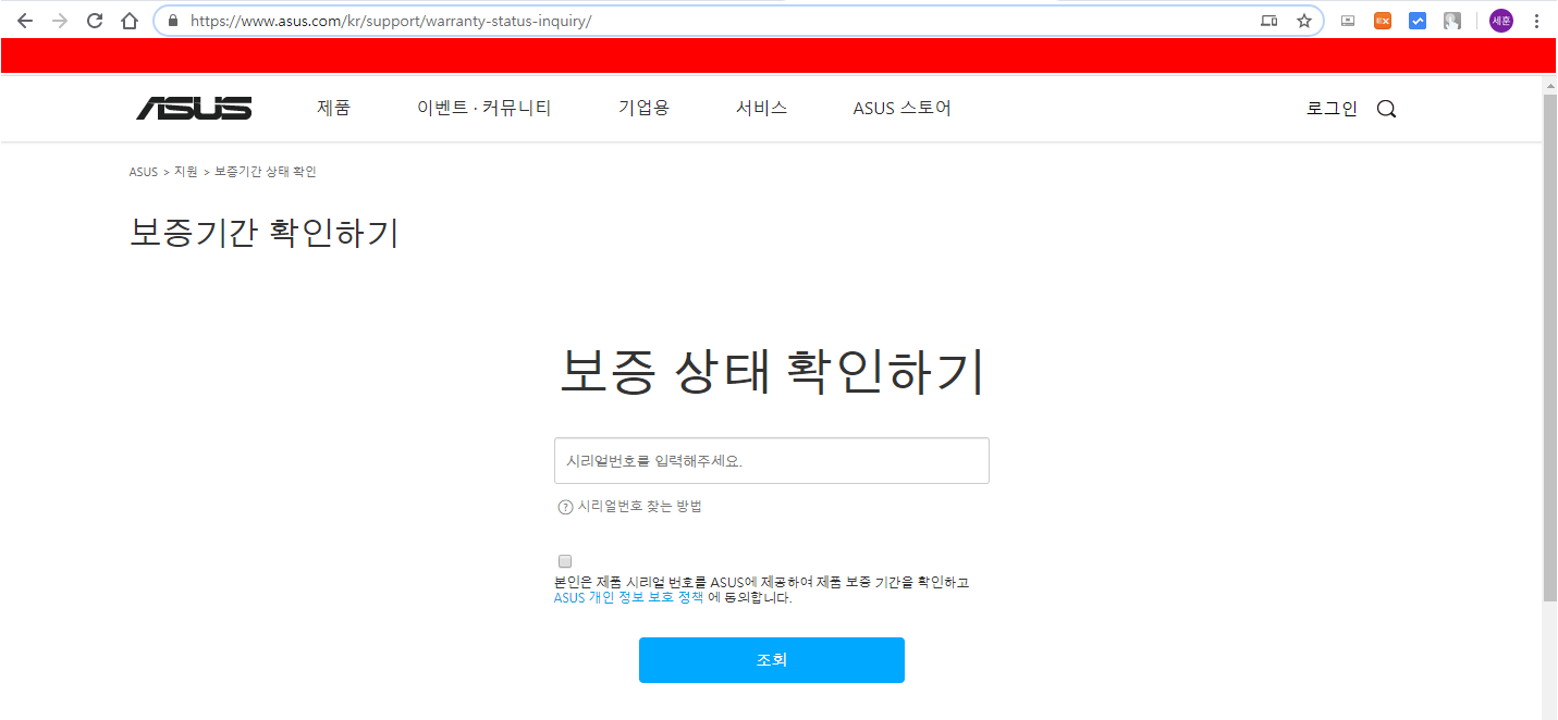 https://www.asus.com/kr/support/warranty-status-inquiry/ 이 링크를 클릭해서 시리얼 넘버 조회를 한번 더 해주시면 됩니다.