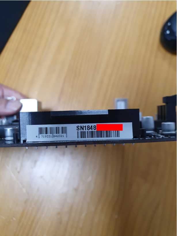 이 모델의 경우에는 SN1848XXXX로 표시되어있네요. 18년도 48주차 모델이 되겠습니다. 기가바이트 메인보드도 유통사가 두 곳이기 때문에 어디서 유통한 제품인지 확인이 필요합니다.
