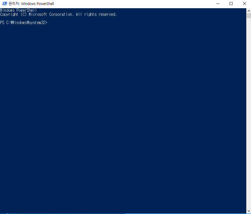 파워쉘 창이 뜨면 아래 명령어를 넣어주시면 됩니다.