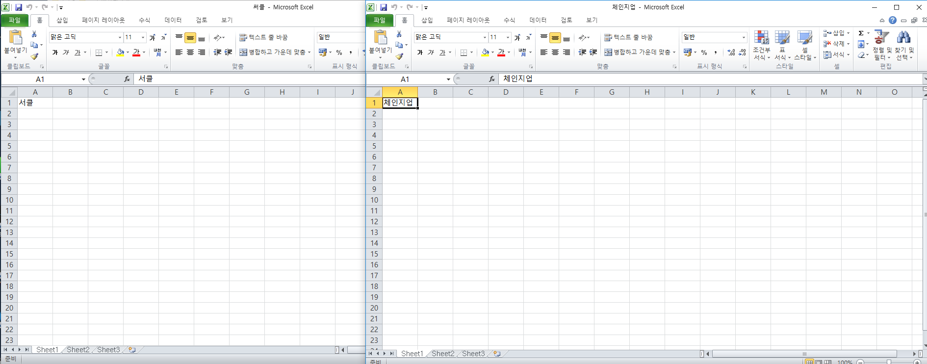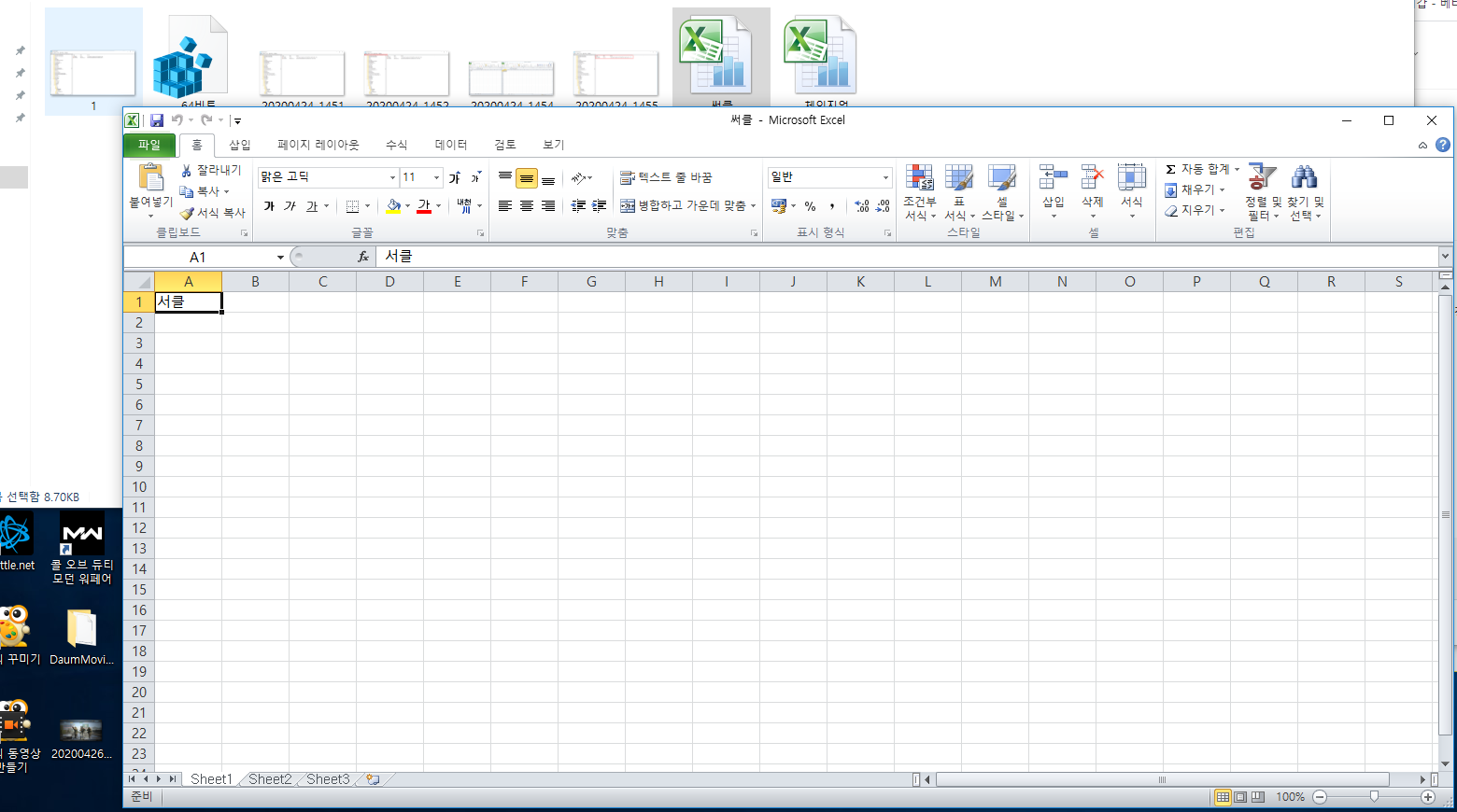 엑셀창이 겹쳐서 뜰 때의 불편함.