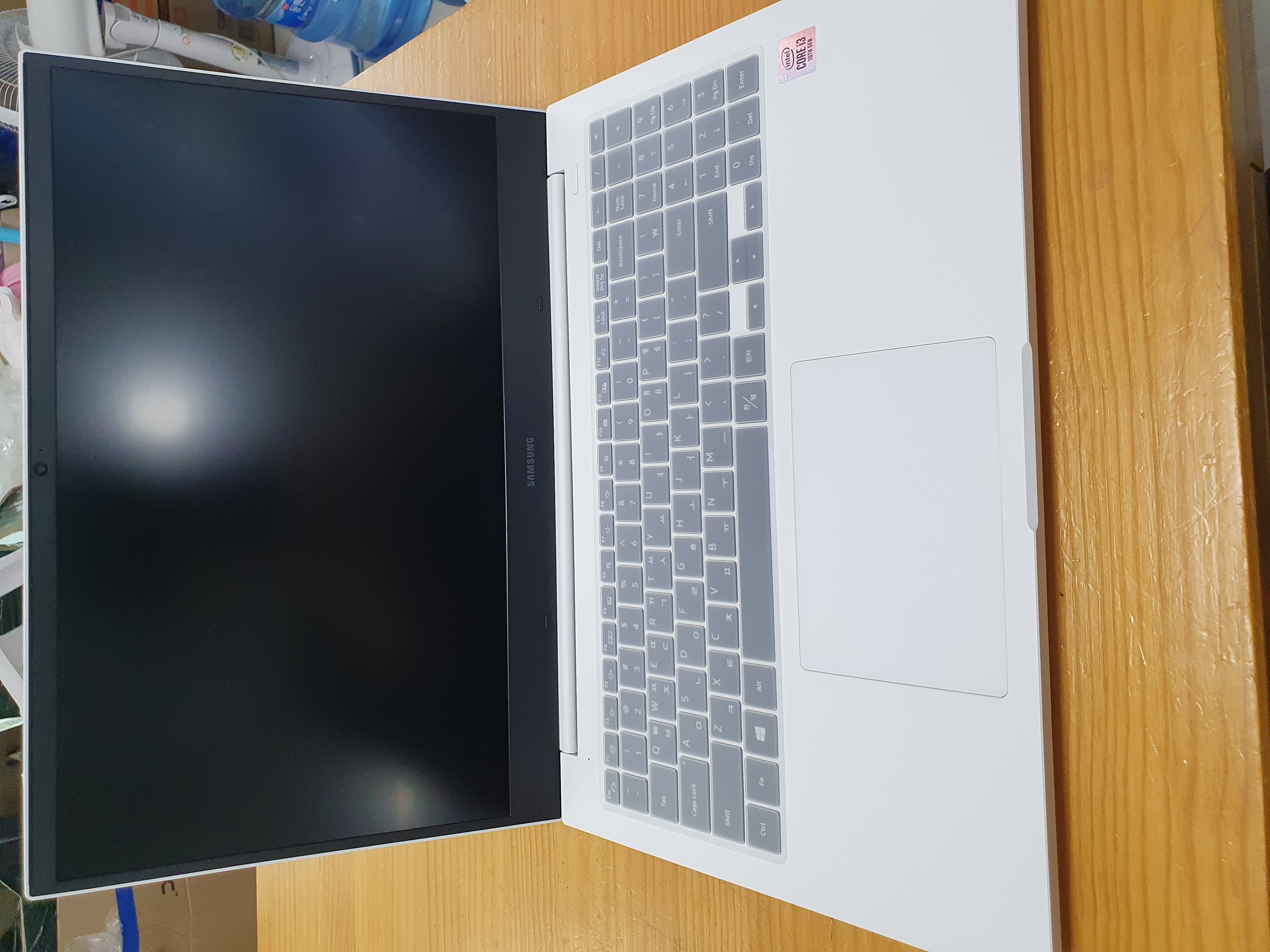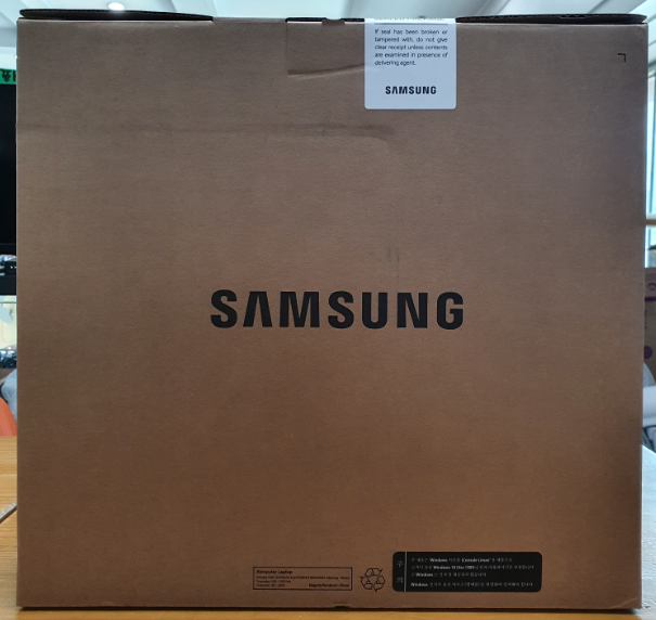요즘 노트북의 구성품 및 포장의 추세 자체가 심플해지는 것 같습니다. 삼성은 저가 라인은 예전부터 무지 박스를 고수해왔습니다. 전면에 스티커 훼손 시 단순 반품은 불가하다고 적혀있으니 참고해주시면 좋을 것 같습니다.
