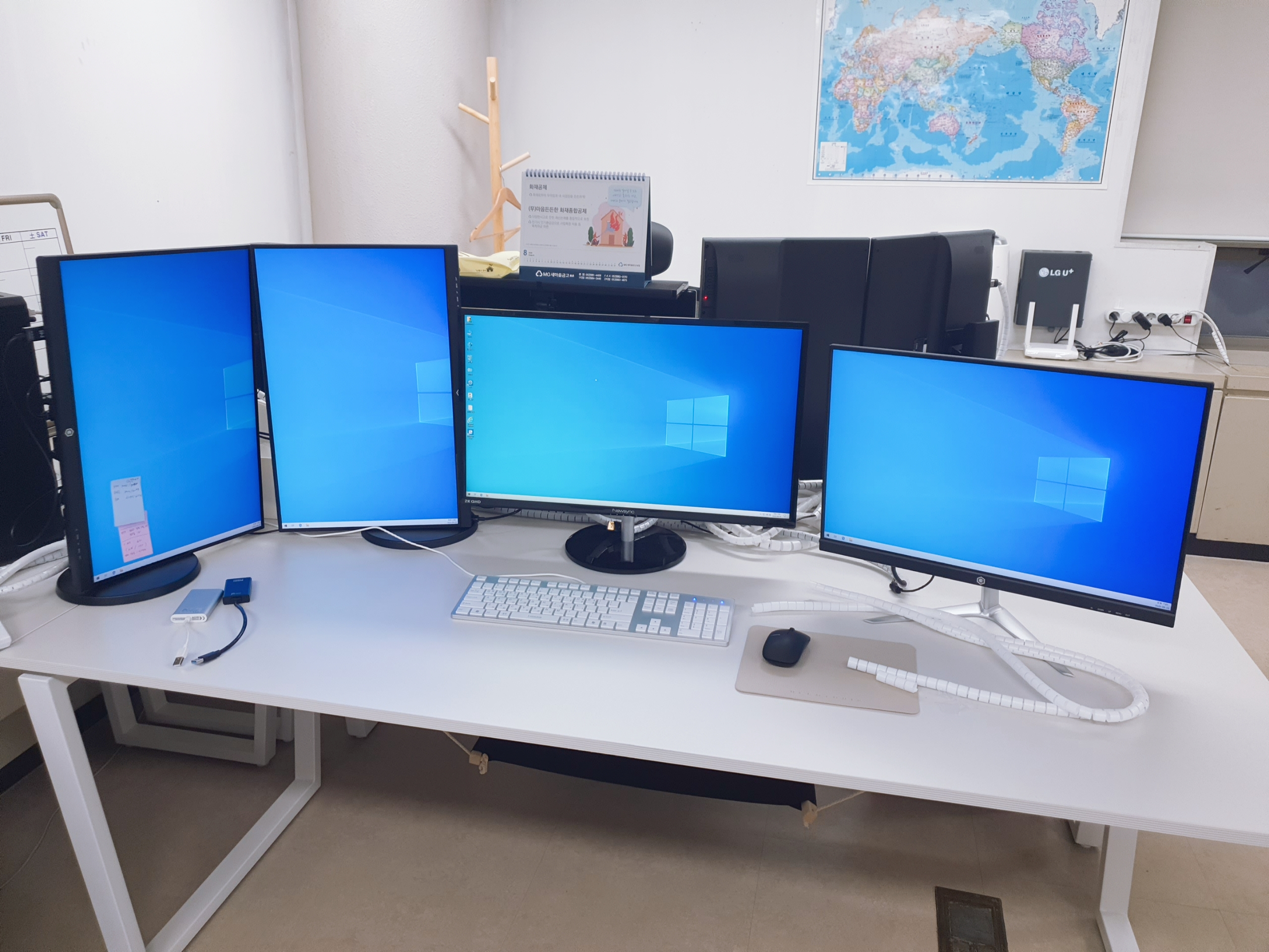 메인 모니터인 뉴싱크 2K QHD 모델을 DP 케이블로 연결하고 2개의 모니터는 DP TO HDMI 케이블 그리고 나머지 하나는 HDMI로 연결했습니다.