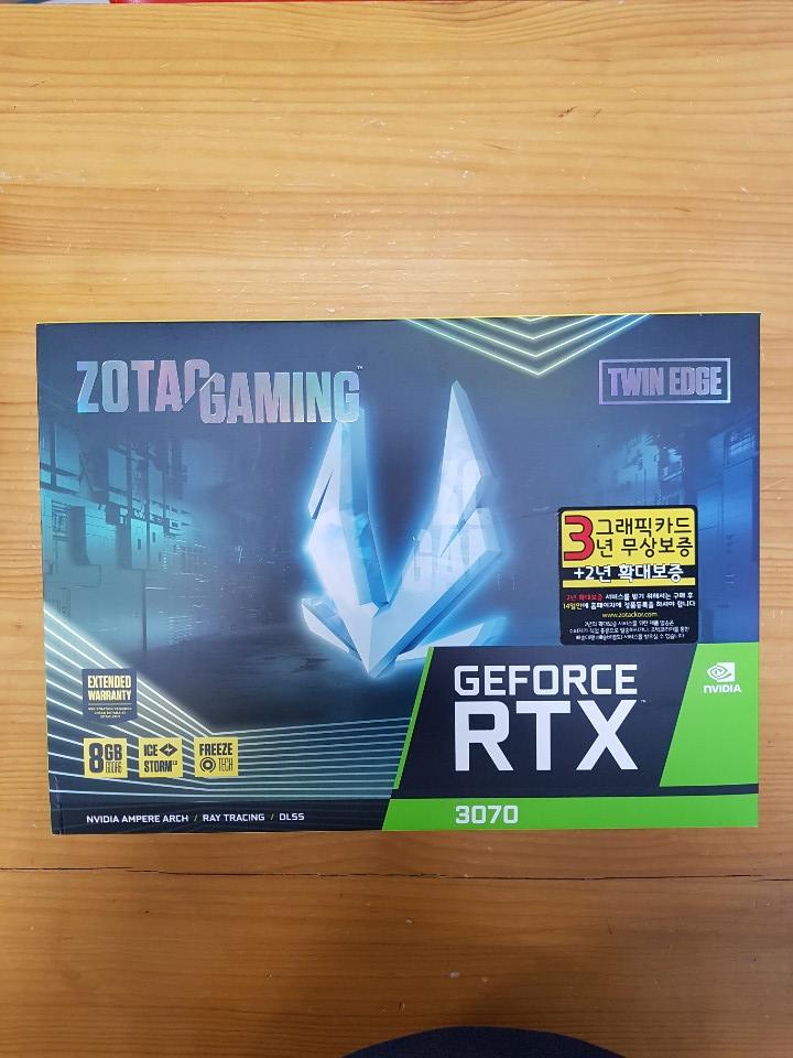 조택 엣지 RTX3070(이하 엣지) 모델은 조택 라인업 중에서도 가장 저렴한 편입니다. GPU 부스터 클럭이 1725MHz 쿠다 프로세서가 5888개, 제로팬 기술 적용, 백플레이트 장착 등 중상급 그래픽 카드의 스펙과 기능은 빠짐없이 들어가 있습니다.