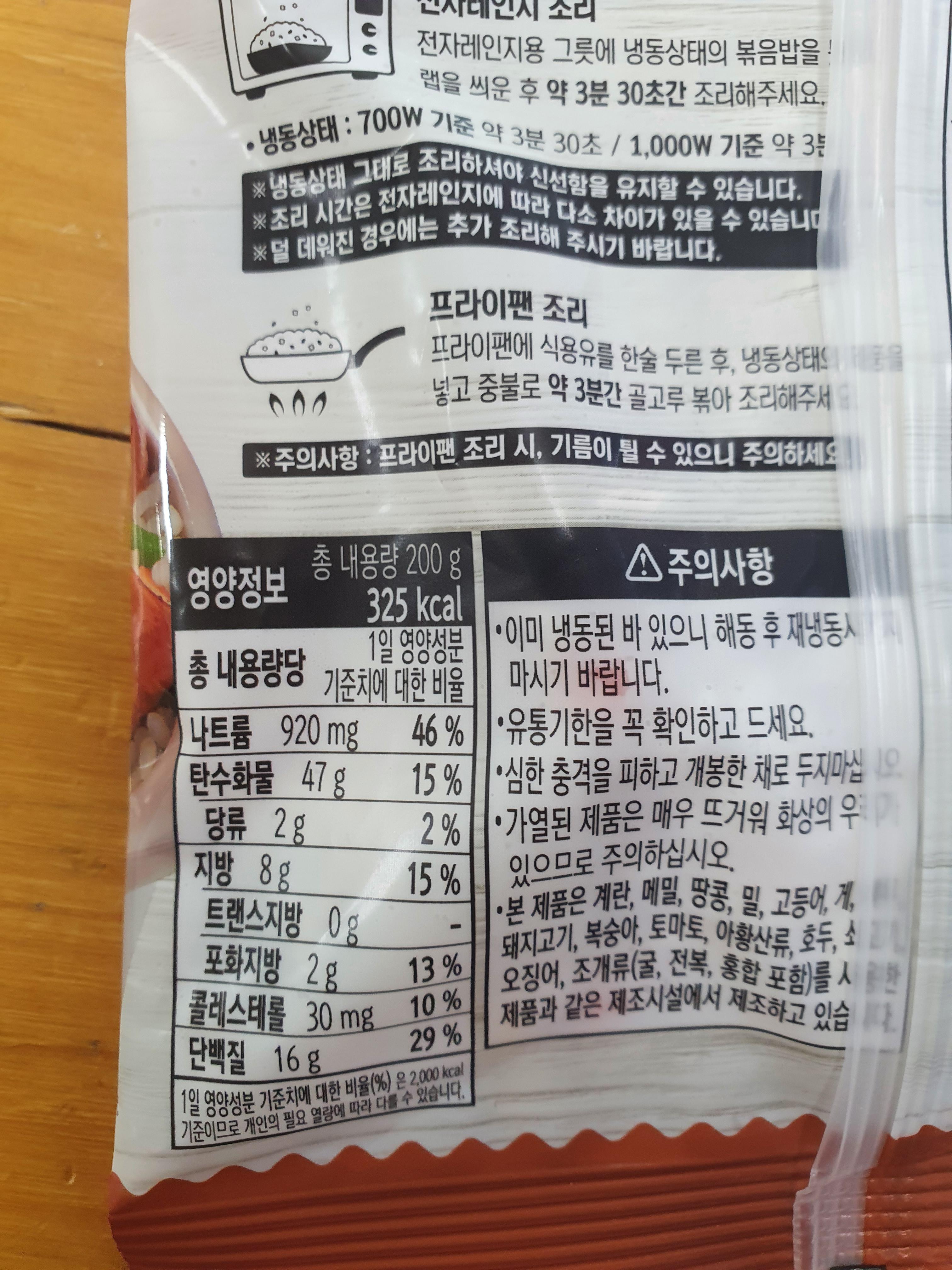 이렇게 구성되어 있습니다. 조리 방법은 후라이팬에 볶는건 귀찮아서 전자렌지에 데우는걸 선호합니다.