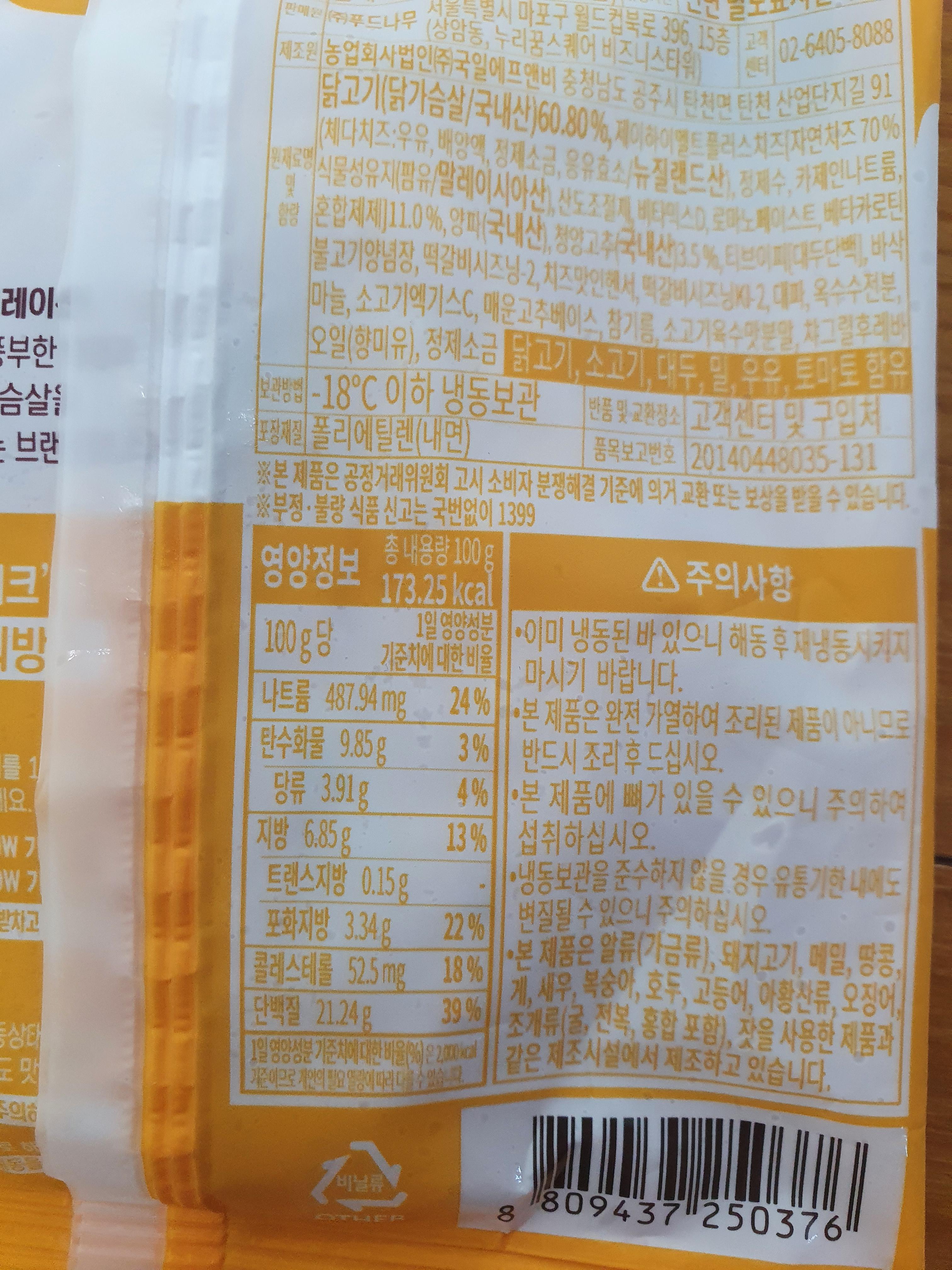 치품닭 닭가슴살의 경우 닭가슴살 스테이크의 경우 감히 말씀드리지만 가장 맛있는 닭가슴살 스테이크 인것 같습니다. 일전에 제가 맛있닭과 허닭을 비교한 포스팅이 있는데요, 개인적인 순위를 말씀드리자면 1. 치품닭 2. 맛있닭 3. 허닭인것 같습니다. 치즈맛이 다소 많이 나기 때문에 느끼한 맛을 싫어하시는 분들에게는 추천드리지는 않습니다.