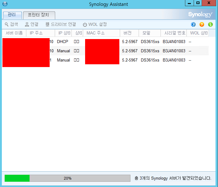 7. 시놀러지 어시스턴트 셋업 (윈도우 서버상에서 헤놀러지 설치 및 같은 네트워크 안의 헤놀러지 간단히 찾기 가능)